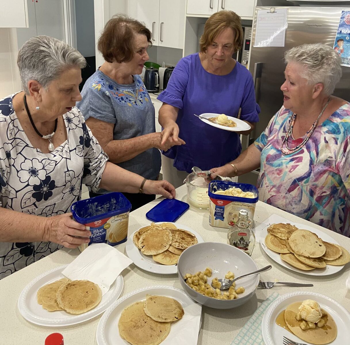 We love a good pancake at Ormiston Rise. Shrove Tuesday aka Pancake Tuesday was our theme for afternoon tea today. Delicious pancakes served with bananas, maple syrup and vanilla ice cream, tea and coffee.